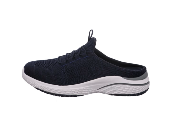 Dockers by Gerlin pistokas tummansinisenä. Helposti jalkaan sujautettava lenkkarimainen pistokas joustonauhoilla. Päällinen on hengittävää verkkoneulosta. Irroitettava pehmustettu pohjallinen. Hyvin kevyt ja joustava pohja.