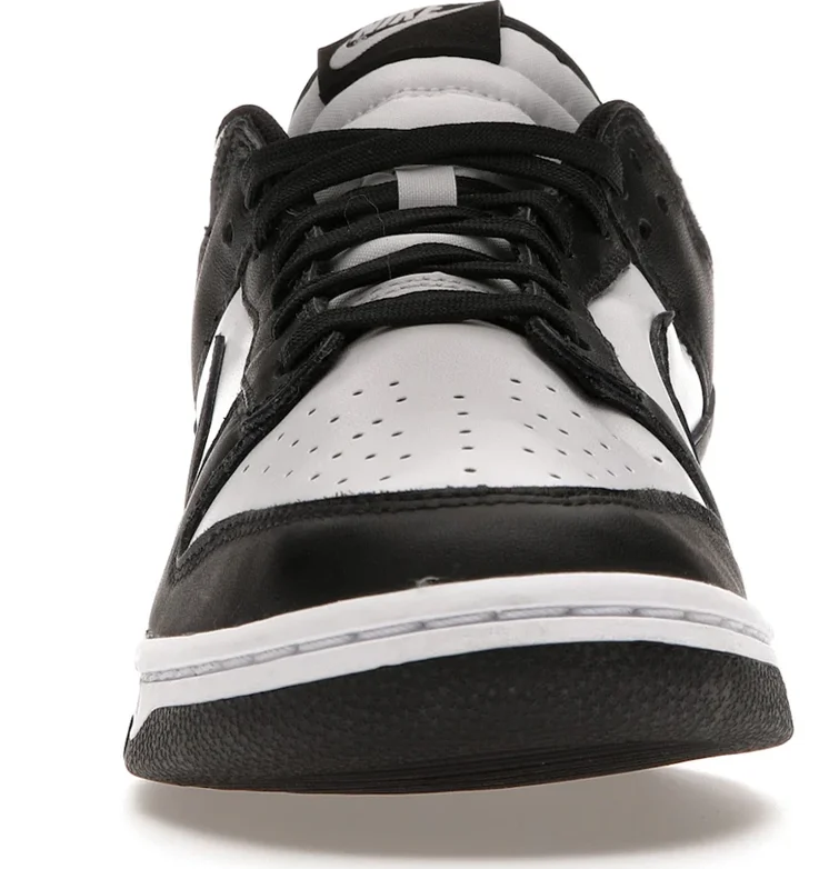 Niken vapaa-ajan tennari Dunk Low Retro valkomustana. Päällinen nahkaa, sisävuori hengittävää tekstiiliä. Irroitettava pohjallinen. Niken ikoninen Court ulkopohja.