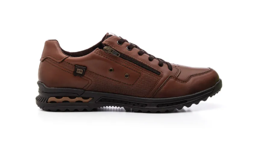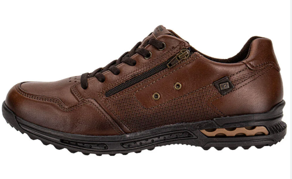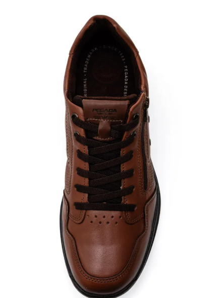 Pegada 511801 on kasuaali käyttökenkä ruskealla nahkapäällisellä, joustonauhoilla ja kätevällä vetoketjulla. Hengittävä tekstiilivuori. Irroitettava kevyesti liimattu pohjallinen. Notkea ulkopohja on hyvin kuvioitua kumia ja kenkä täynnä hienoja yksityiskohtia.