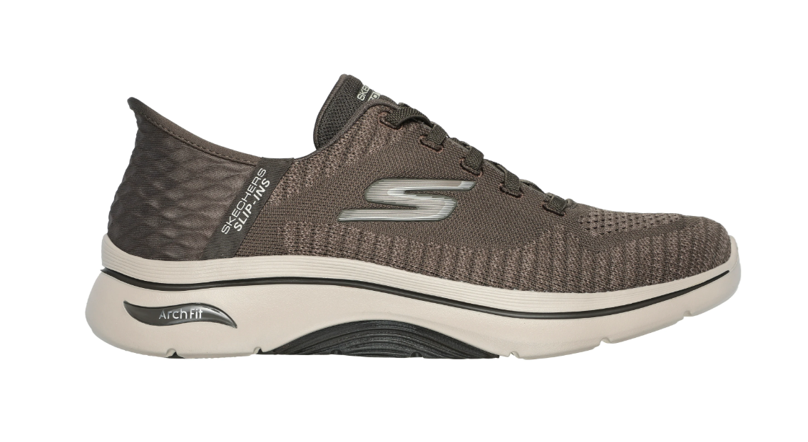 Skechersin Go Walk 2.0 Arch Fit Slip-ins Extra Wide sneakerit vaaleanruskeana joustonauhoilla ja erittäin tilavalla lestillä. Valmistajan värikoodi Taupe. Varustettuna helposti jalkaan menevällä slip-ins teknologialla vaivattomasti ilman kumarruksia tai kenkälusikkaa. Päällinen ja sisävuori hengittävää verkkotekstiiliä. Pehmentävä ja irroitettava Arch Fit pohjallinen. Arch Fit -sisäpohja on suunniteltu holvituella, jolla saat parhaan tuen ja vakauden askeleille. Kengät takaavat myös vakaan kantatuen ja pehmusteen, joka muotoutuu hyvin kantapääsi muotoihin. Huom! Reilu mitoitus.