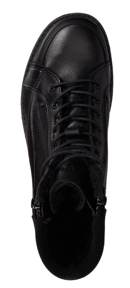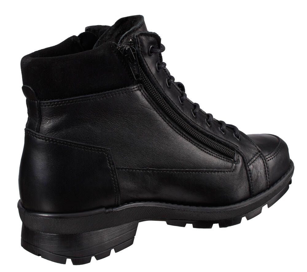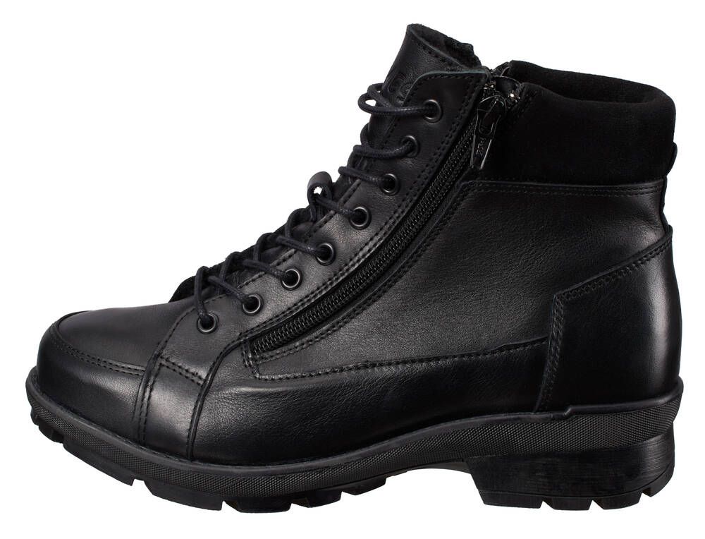Ilveksen musta tilavalestinen 8326 talvikenkä kitkapohjalla. Kaksi vetoketjua helpottaa kengän pukemista ja riisumista, nauhoilla saat säädettyä kengän juuri sinun jalkaasi sopivaksi. Kengän päällinen on vettä ja likaa hylkivää laadukasta pintanahkaa. Lämmin vuori kiinteän lämpöpohjallisen kanssa pitää varpaasi hyvin lämpiminä. Kengän pitävä Grip+kumipohja pitää hyvin liukkailla pinnoilla.