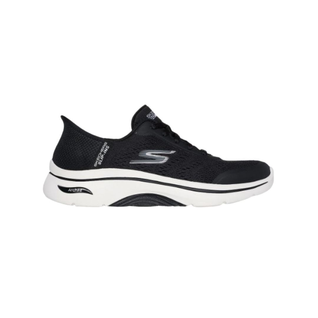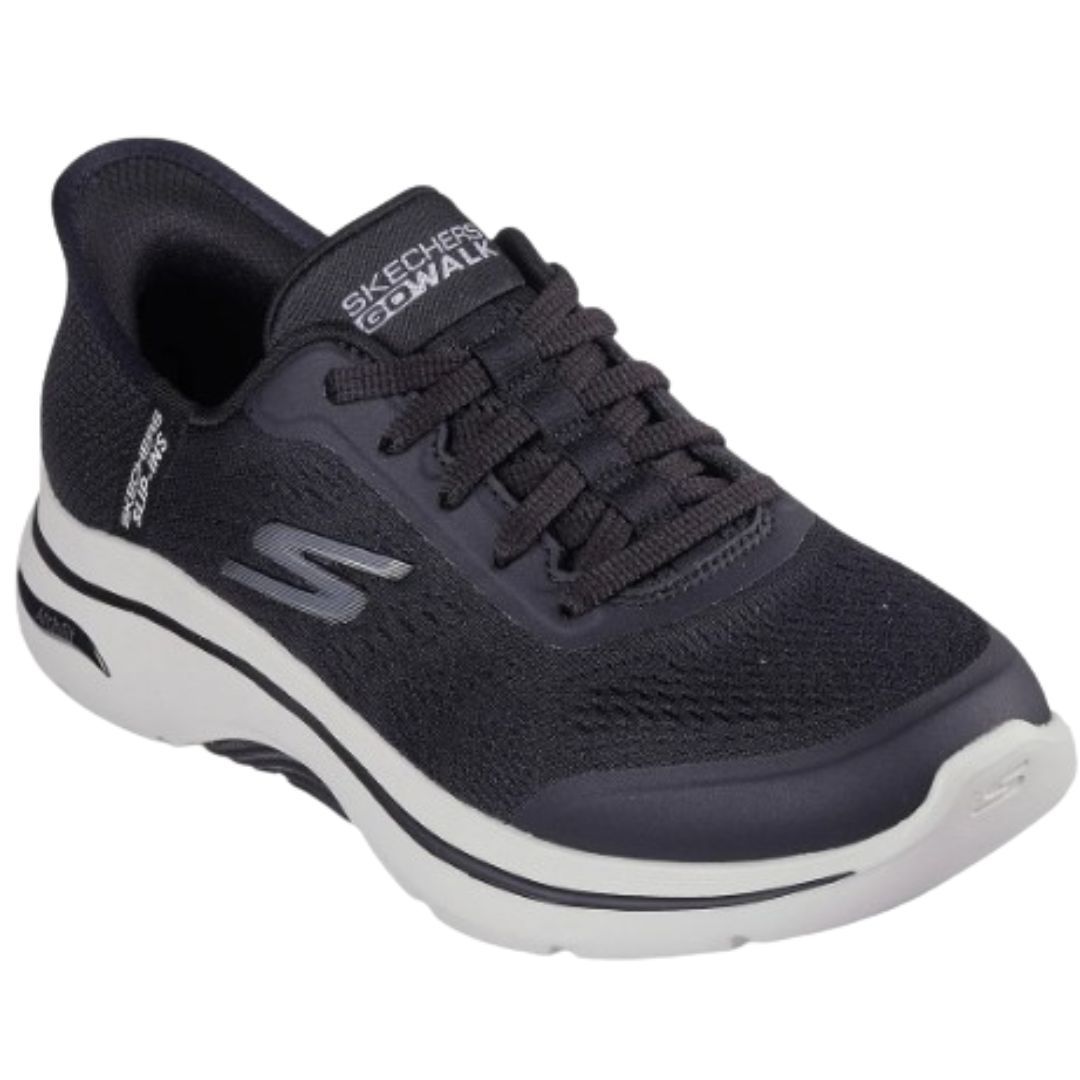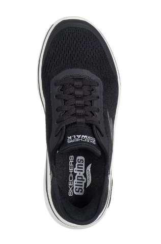 Skechersin Go Walk Arch Fit 2.0 Slip-ins sneakerit mustana tilavammalla Wide -lestillä. Varustettuna helposti jalkaan menevällä slip-ins teknologialla vaivattomasti ilman kumarruksia tai kenkälusikkaa ja nauhoilla vain viimeistelet istuvuuden. Päällinen ja sisävuori hengittävää verkkotekstiiliä. Pehmentävä ja irroitettava Arch Fit pohjallinen. Arch Fit -sisäpohja on suunniteltu holvituella, jolla saat parhaan tuen ja vakauden askeleille. Kengät takaavat myös vakaan kantatuen ja pehmusteen, joka muotoutuu hyvin kantapääsi muotoihin. Huom! Reilu mitoitus.