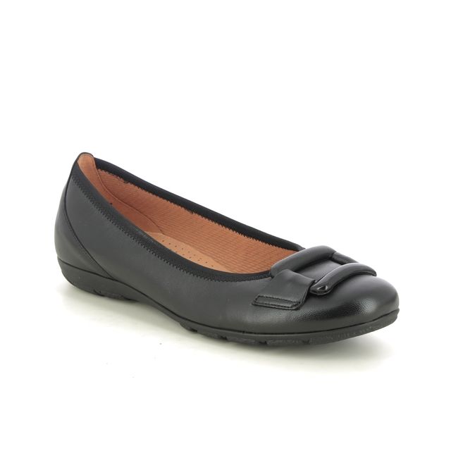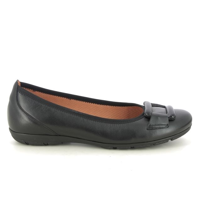 Gaborin mukava Raven 84.166 ballerina kauniilla koristeella mustana normaalilla lestillä. Päällinen laadukasta pehmeää nahkaa, sisävuori yhdistelmä tekstiiliä ja nahkaa. Gaborin Hovercraft pohja vaimentaa hyvin iskuja. Ulkopohja pehmeää ja joustavaa kumia.