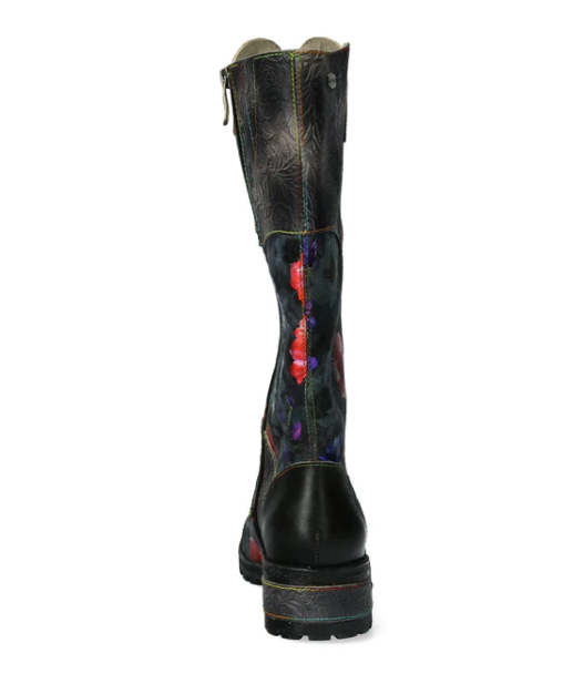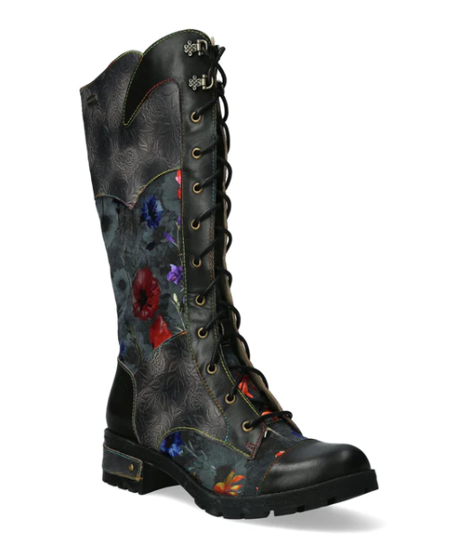 Laura Vitan Cocrailo 63 tummanharmaana kauniilla kukkakuosilla. Pitkävartisessa saappaassa on tyylikäs ja uniikki muotoilu. Kätevä vetoketju sisäsyrjällä helpottaa jalkaan asettamista ja 12-rivisellä nauhoituksella viimeistelet istuvuuden. Korko 4 cm ja ulkopohjassa on kumia hyvällä kuvioinnilla. 43 kokoa saatavilla vaaleanruskeana.